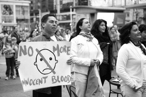 I needed some time to reflect on the past week and the Peace Rally we held in Dundas Square last Wednesday night. It was such an amazing night in so many ways that I needed some time to digest everything that happened and all that has been inspired by that one amazing evening. Last night I went and saw Maya Angelou and I have to say I was thoroughly impressed. There was some key things she spoke about that sent tingles down my spine and made me think about my past week and the Peace Rally – Hope for Mexico. One of her main messages of the evening was to inspire each audience member to try and be the rainbow in someone else’s cloud, because you just never know how a smile, a kind gesture, an acknowledgement or a simple hello might affect that person’s day. She encouraged us to do something good – because you want to – and know that ‘someone’ is always watching, ‘someone’ is always taking note and maybe they will go on to do something great too and change another person’s perspective or day or life. It made me think of our peace rally and what that night did for my family and so many other families.