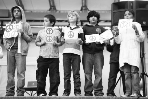 Vivianna Castell sung a song to the children that night too, she understood the importance of passing on this message of peace to our children and the importance of hope that will bring to their future. It was amazing to see all the kids gather at her feet while she was singing looking up in admiration, and the image of all the kids on stage holding peace signs while I read a poem about peace is a powerful one too. They were listening.