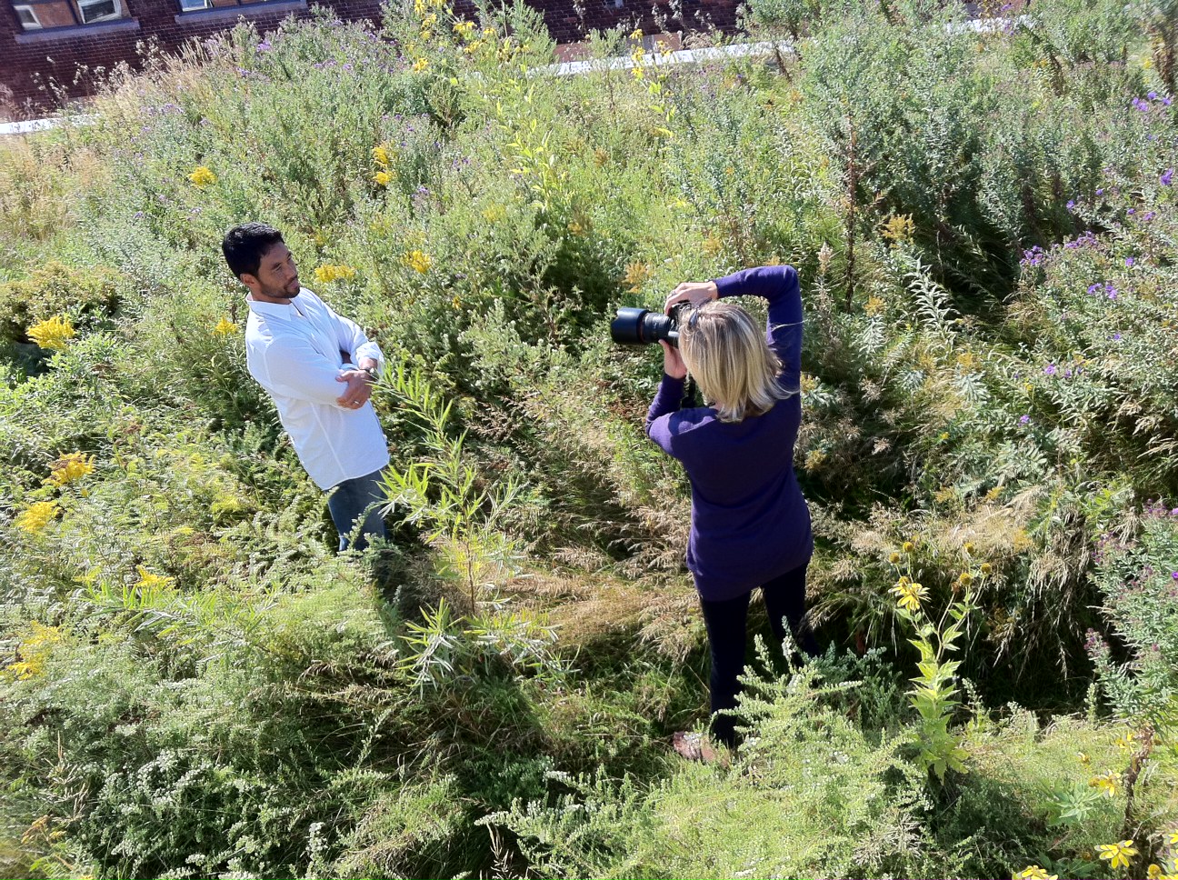 What a cool shoot I had this morning. My neighbour and friend Inbae is working on an amazing start up business. Their office is downtown in Chinatown and he asked if I could come and take some shots of him for promotional material and then the gang shot of all his colleagues. This is actually on a rooftop in downtown Toronto. I guess, as Inbae explained a University is using the roof as a rooftop garden experiment. What fun! It was certainly a gorgeous morning.