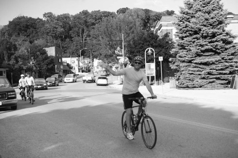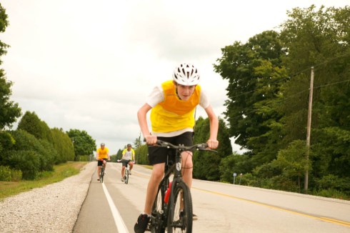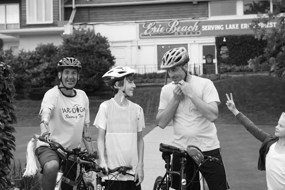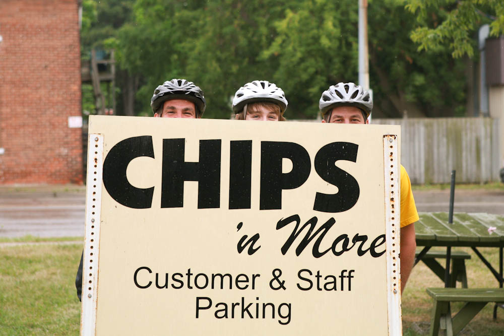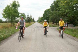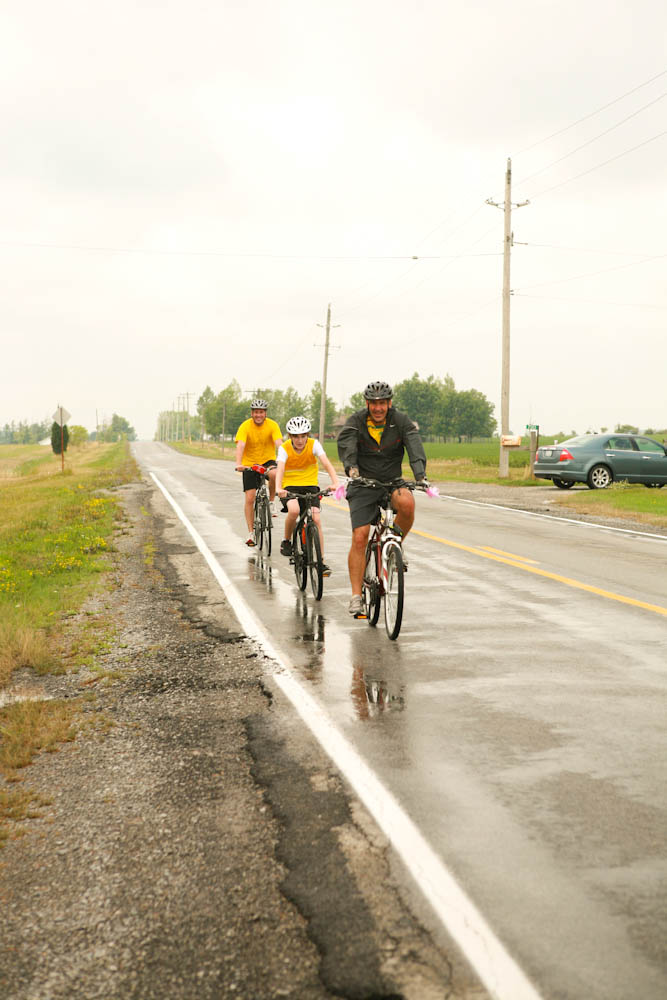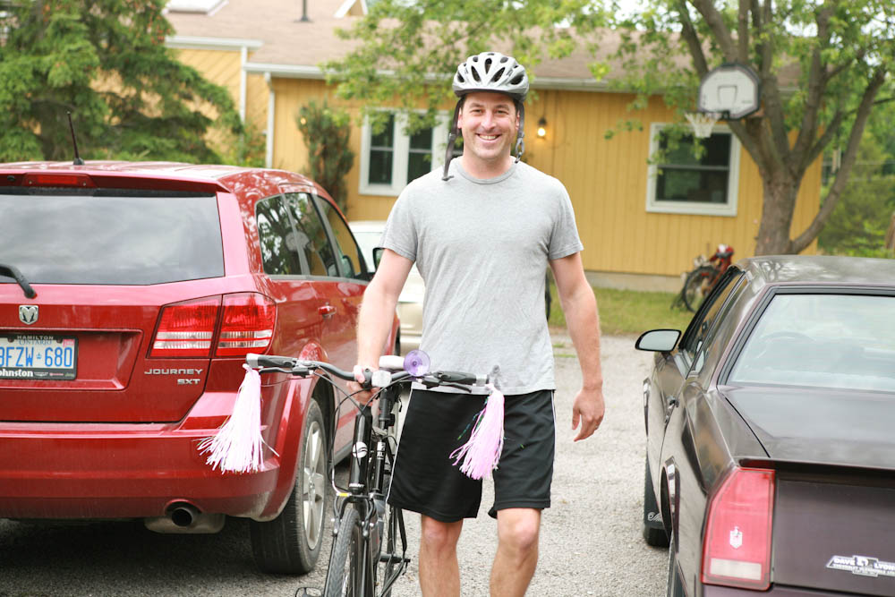 I spent the last couple of days on the road as the ‘support crew’ for my husband’s, brother’s and nephew’s first annual bike tour. They’ve never really been interested in bike riding, certainly never trained….but this is something they wanted to do. I can’t tell you how therapeutic it was driving down country roads, surrounded by corn fields, silos and sunshine. My daughter and niece in the backseat giggling, making up rap songs about the boyz on bikes. It was a great adventure and just what the doctor ordered. They rode out of Vineland, near St. Catherines on Thursday morning, joke was on my husband when my nephew decorated his bike with pink tassels and a purple horn.