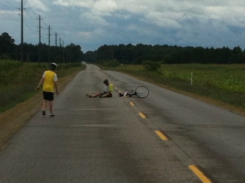 Oh, this last picture was taken on a phone as the support crew missed this little episode….. My brother ‘gracefully’ fell off his bike and sat slumped over in the middle of the road… for dramatic affect…. while my husband ran into my nephew and knocked him off his bike…. from laughing so hard. Good times!